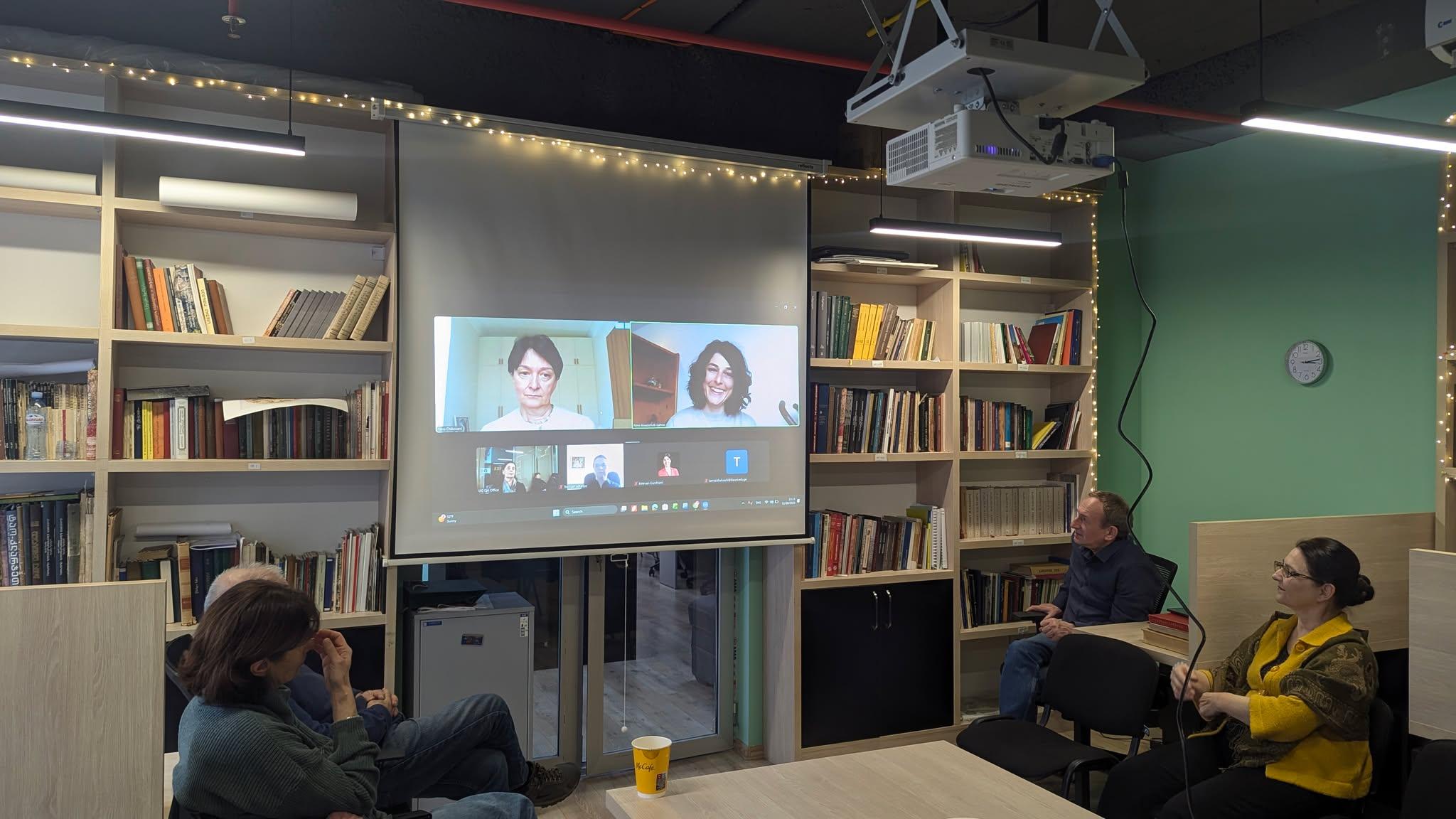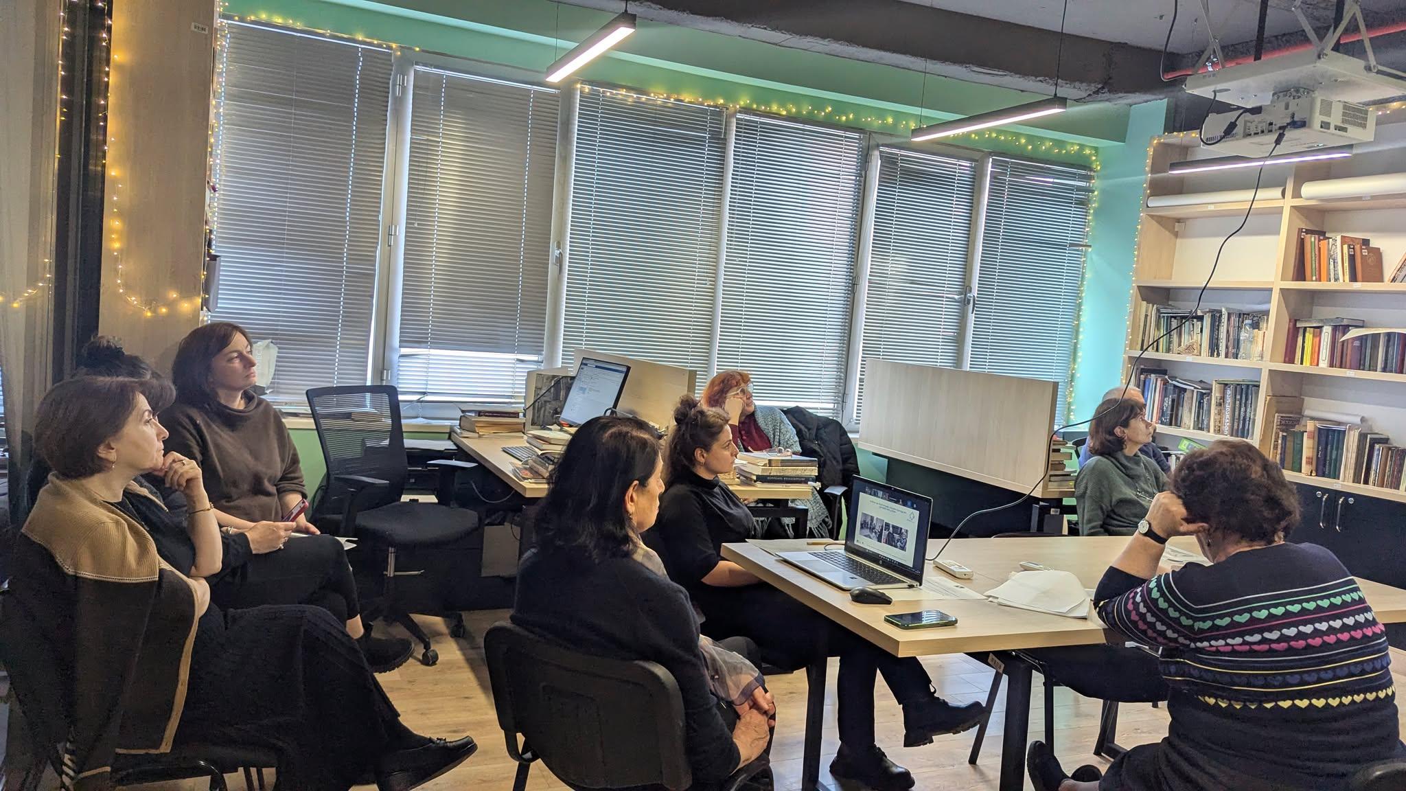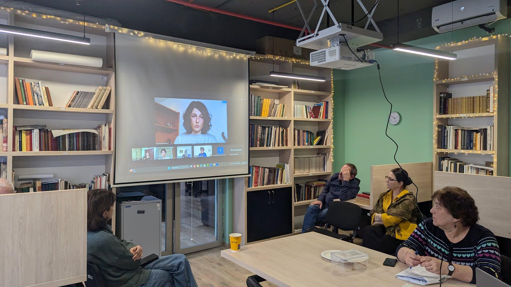 The speaker Nino Aivazishvili-Gene, Doctor of Social Anthropology and researcher at the Leibniz Institute for East and Southeast European Studies, who joined online from Germany.